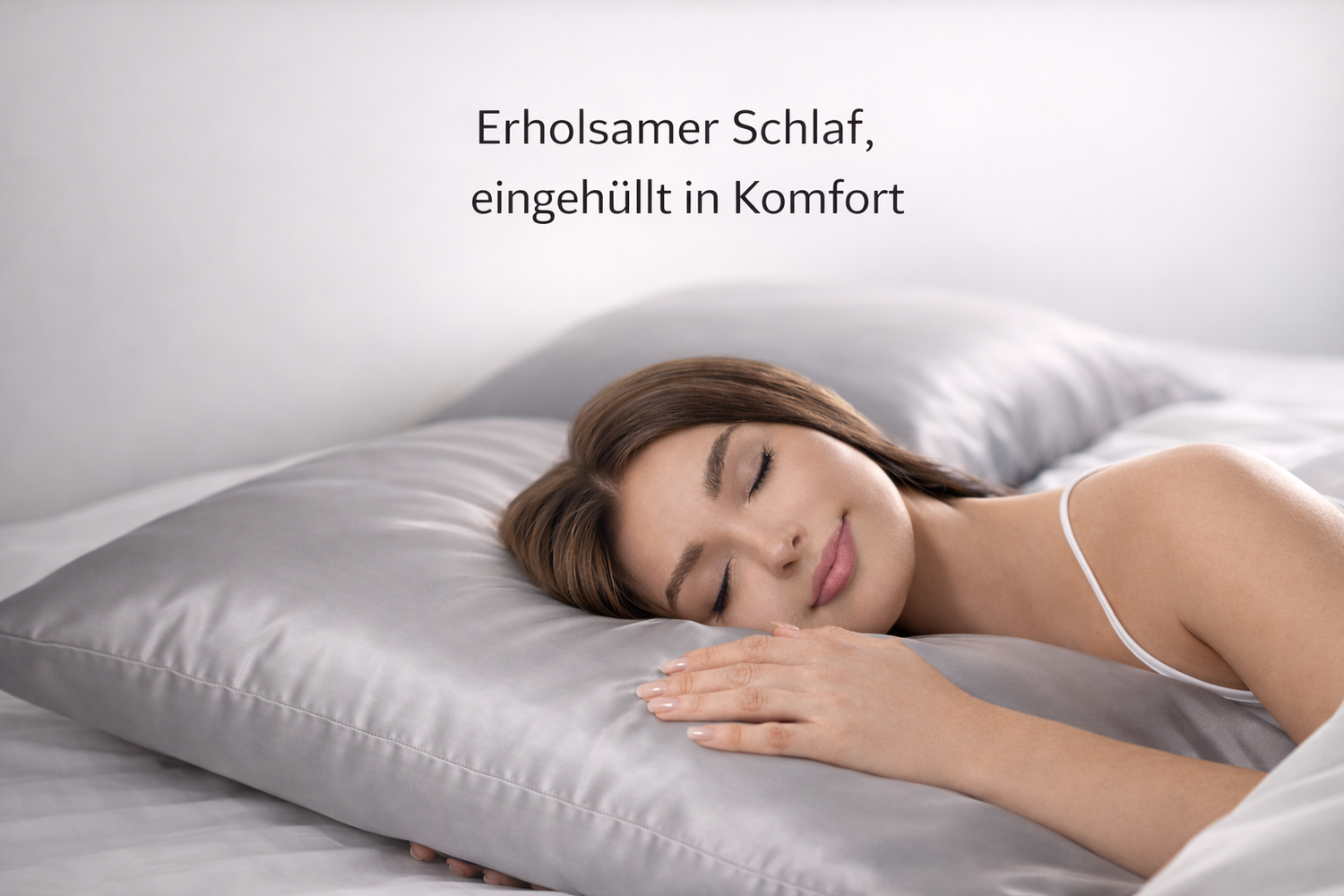Die glatte Oberfläche unserer Seide reduziert Druckstellen und sorgt für ein angenehm kühles, sanftes Hautgefühl – für erholsamen Schlaf und einen frischen Start in den Tag.
